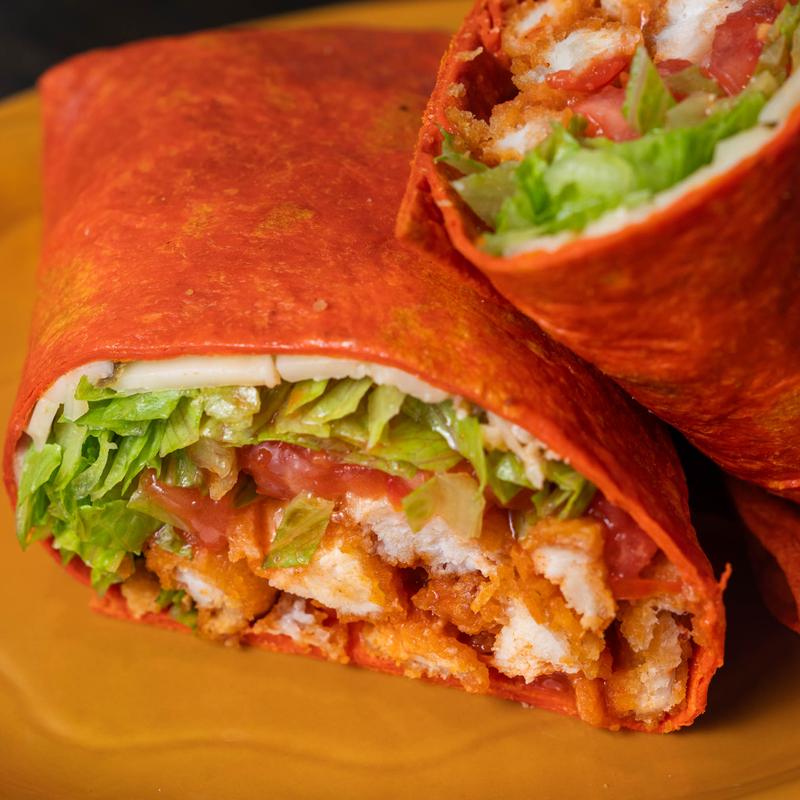 Grilled or fried chicken tossed in a buffalo sauce, lettuce, tomato, cheese.