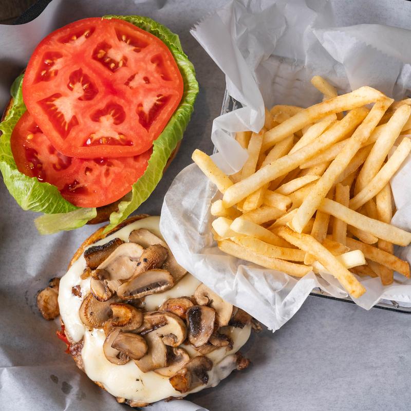 1⁄2 lb burger, garlic & parmesan-sauteed mushroom with Swiss.